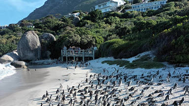 Experience the magic of Cape Town's coast in just half a day. Explore two stunning beaches and one of the world’s most scenic drives. Start your adventure at Muizenberg Beach, famous for its colorful beach huts and perfect surf. Continue your journey with a visit to Boulders Beach, where you'll have the unique opportunity to swim alongside playful African penguins in their natural habitat. End your day with a breathtaking drive along Chapman’s Peak, a grand architectural feat from the early 1900s, offering panoramic views and numerous photo stops. This 5-hour tour guarantees a blend of adventure, wildlife encounters, and unforgettable scenery.
