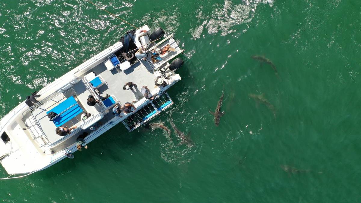 Our experienced crew ensures you never miss a moment, guiding your focus for the best possible views. For certified divers, a hookah scuba system is available on request when visibility exceeds 6 meters, allowing for a more immersive experience as you follow the sharks effortlessly around the cage and boat.